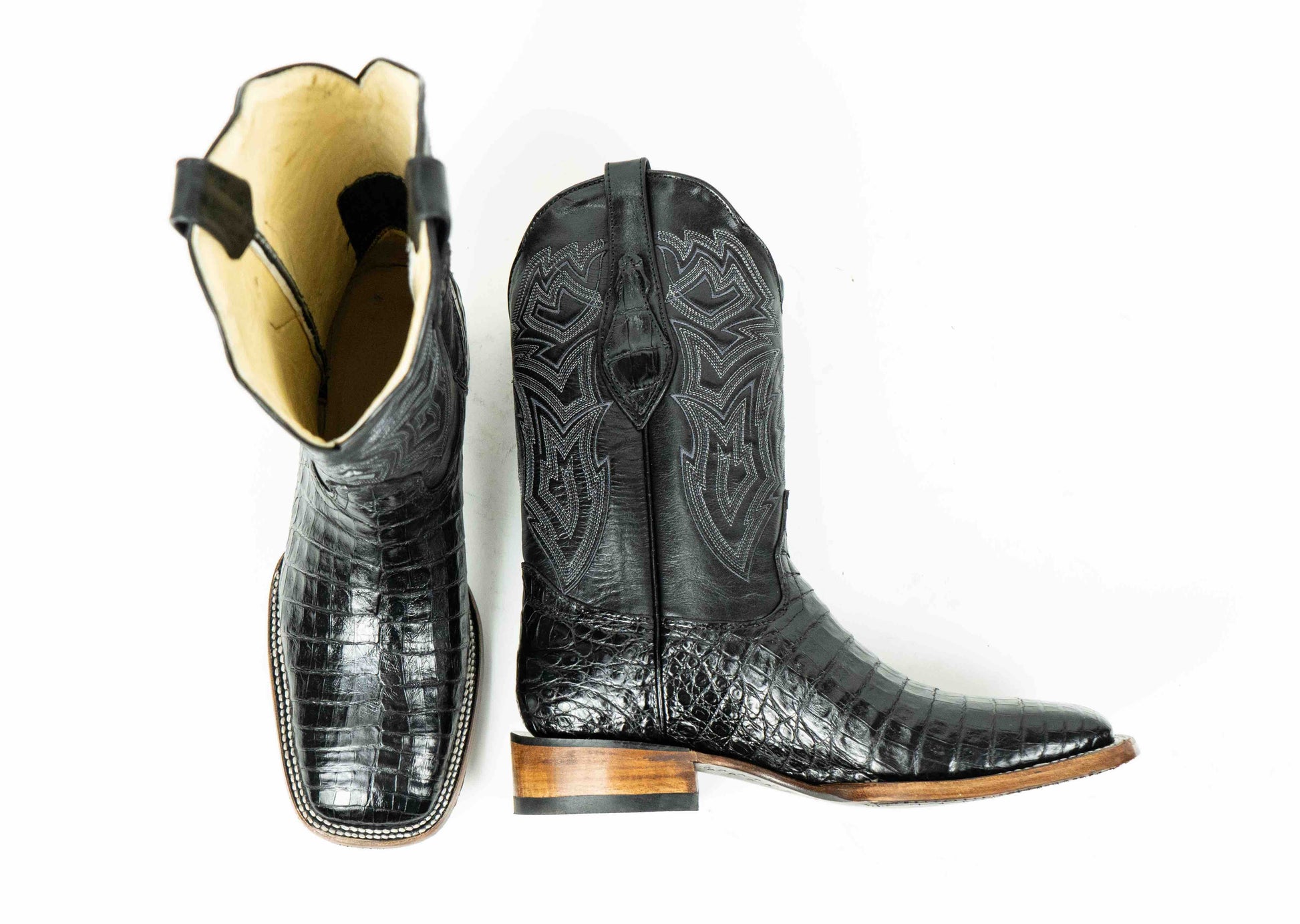 Leather: Premium Crocodile Leather. Crocodile Belly Boots are a Western-style masterpiece, handcrafted from exotic genuine crocodile leather. The ample winged-vamp construction adds to the perfection of these boots. Quality, comfort, and softness are features you will experience when wearing them. Handmade in Leon, Mexico.