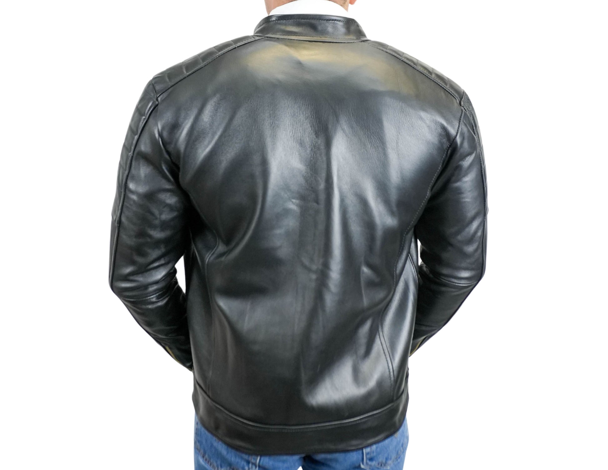 The Dante Black Leather Jacket is expertly crafted from the finest Pelibuey sheepskin leather, offering exceptional durability and a luxuriously soft, refined finish. Its plush shearling lining delivers unmatched warmth and a bold, rebellious style, ensuring both comfort and fashion-forward appeal.