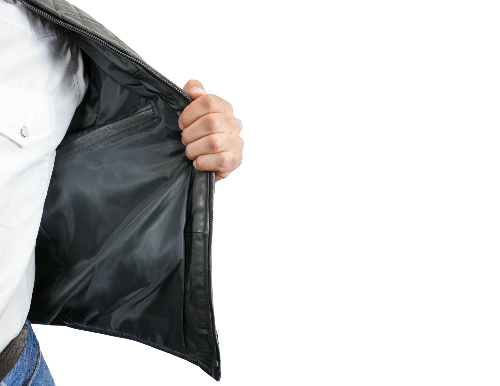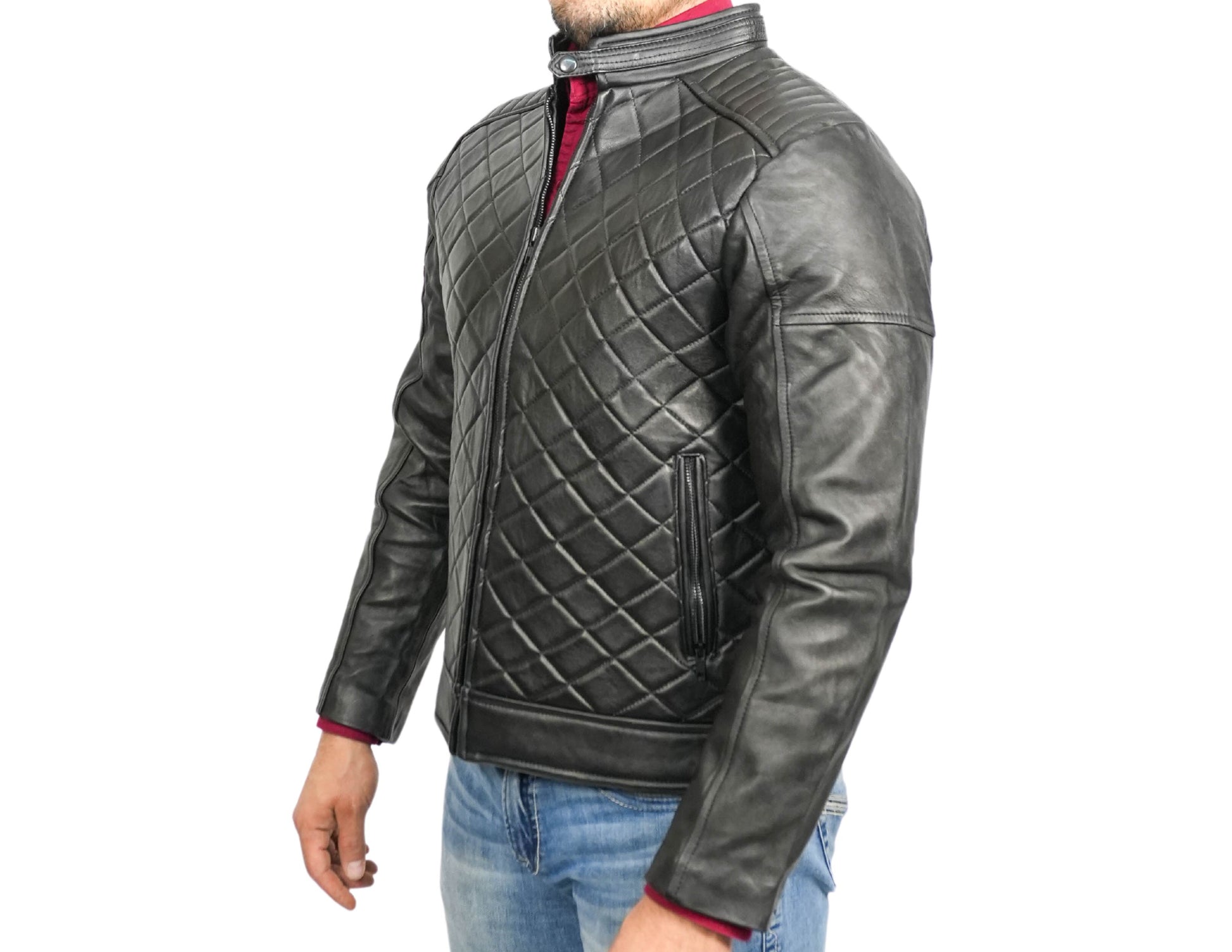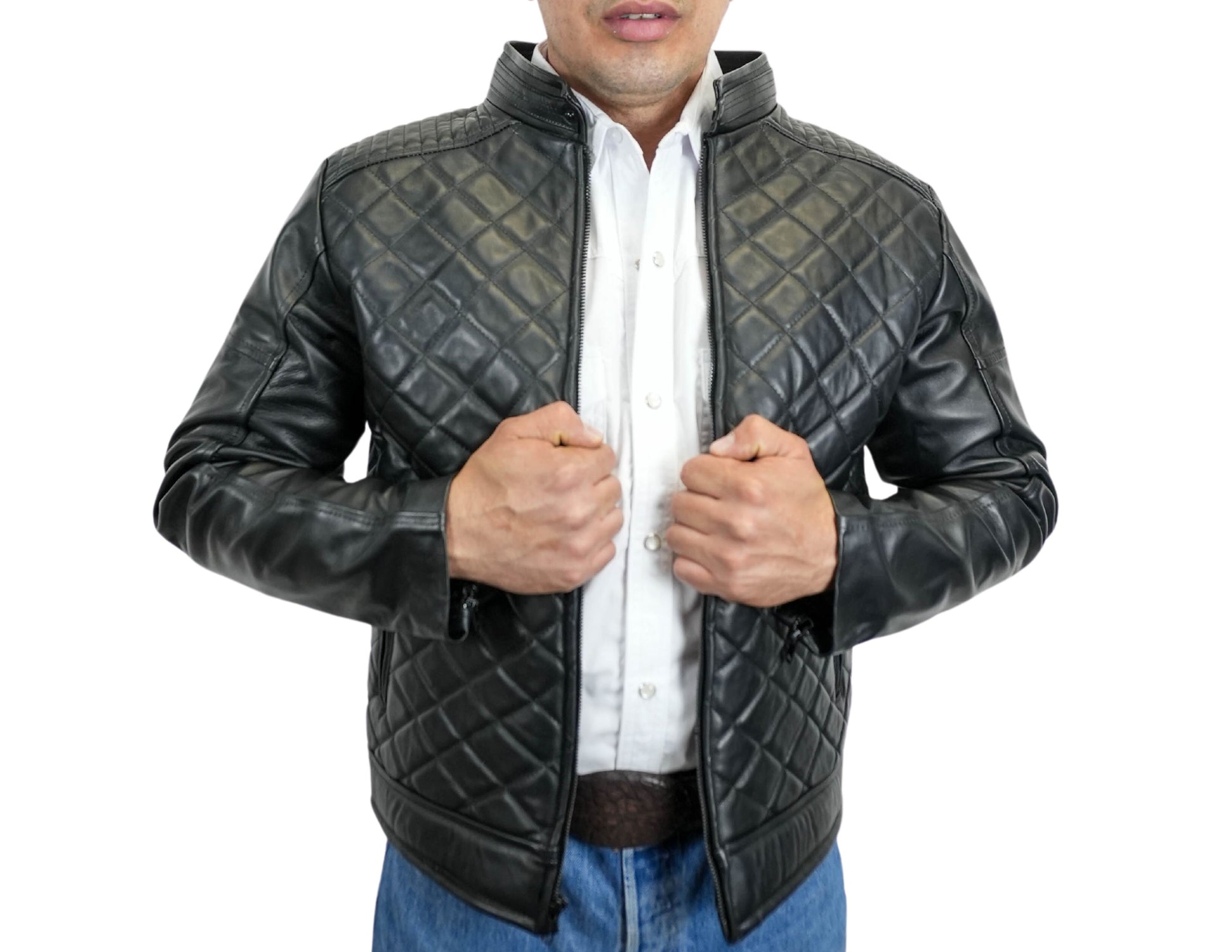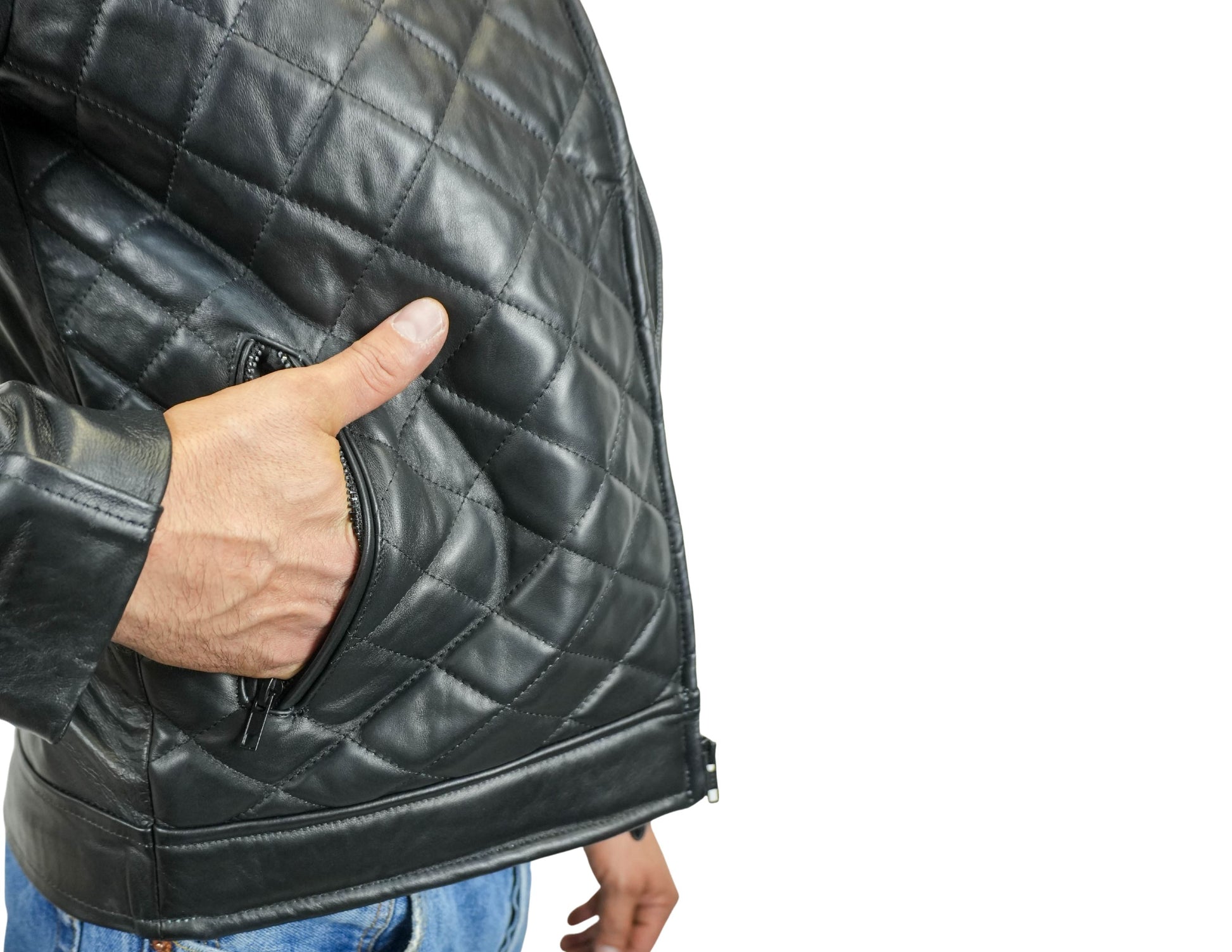 Unveil the Black Milan Jacket, meticulously crafted from the finest Pelibuey sheepskin. Featuring a luxurious sheepskin collar and a soft white synthetic textile lining, this jacket showcases a distinctive diamond-pattern design. Designed to blend style with function, it boasts a sleek brass metallic zipper, offering a perfect fusion of timeless elegance, warmth, and exceptional durability. The Milan Jacket is the ultimate choice for those who appreciate superior craftsmanship, refined comfort, and unparalleled style.