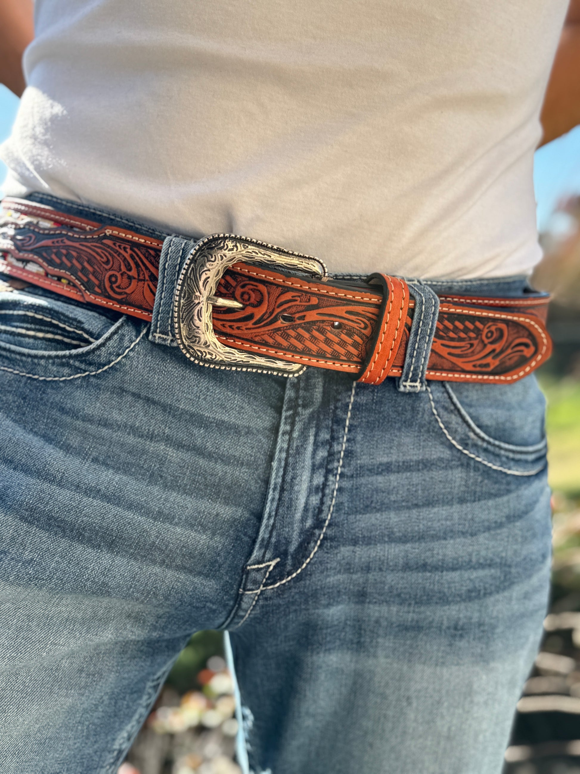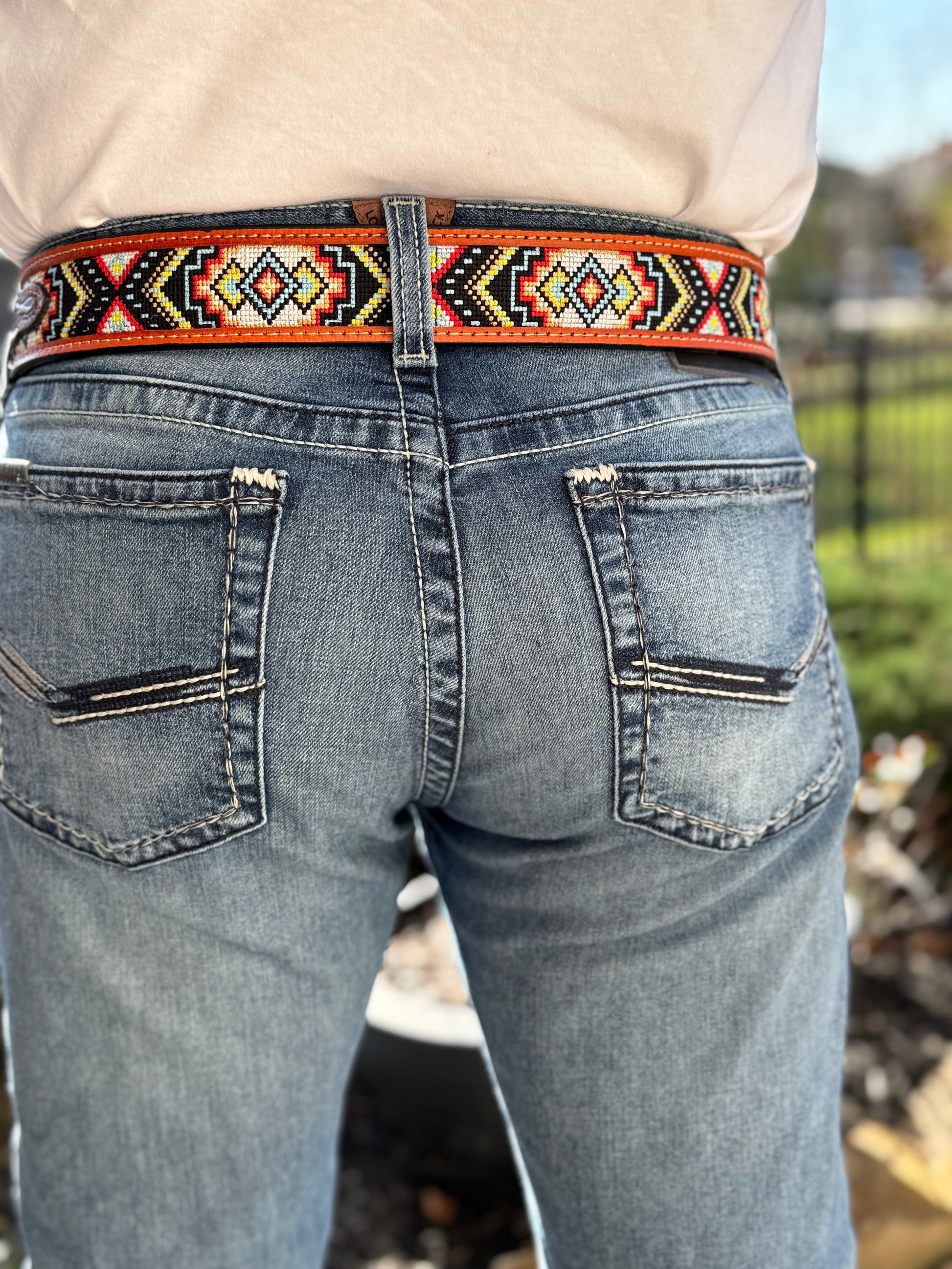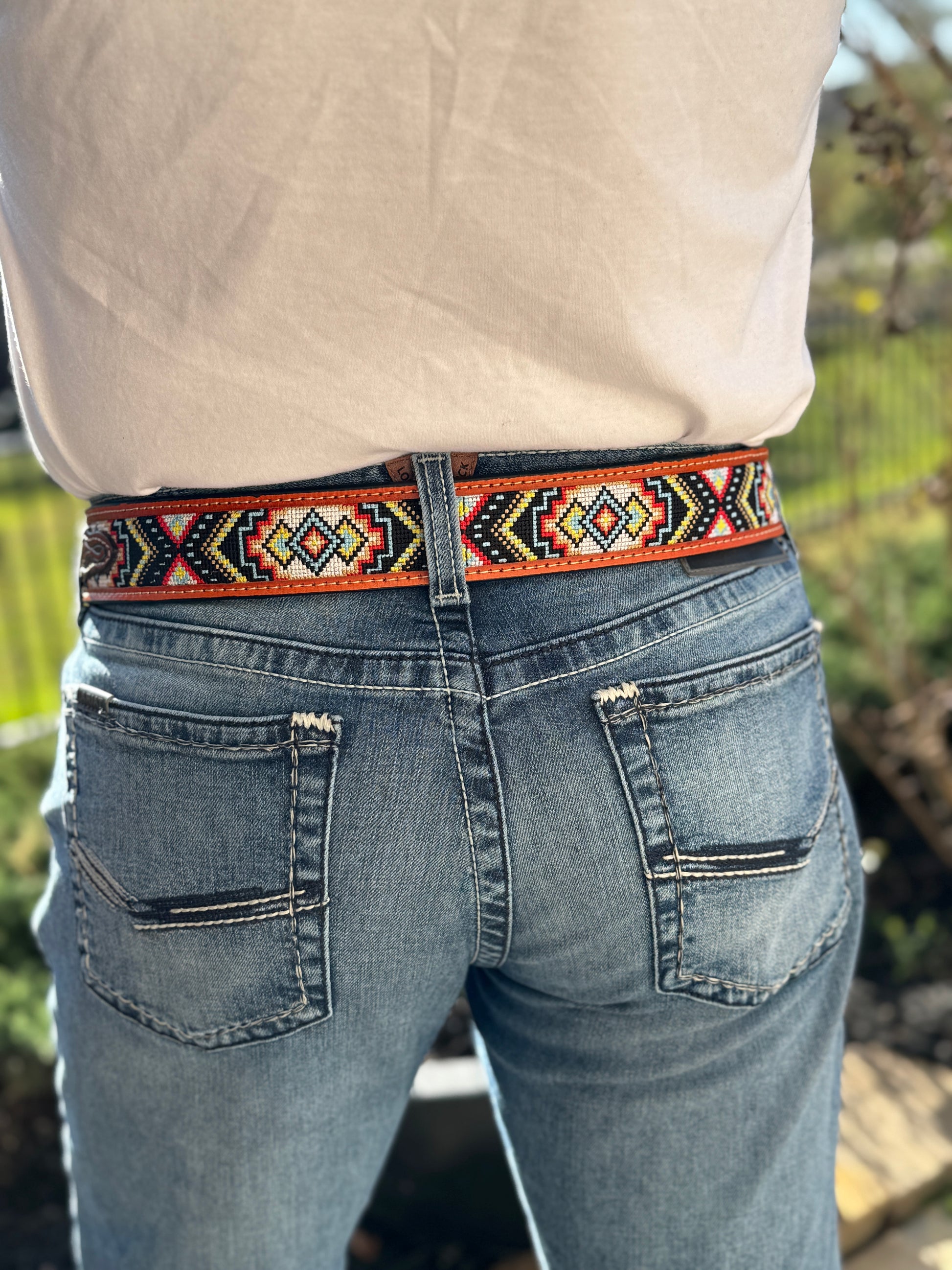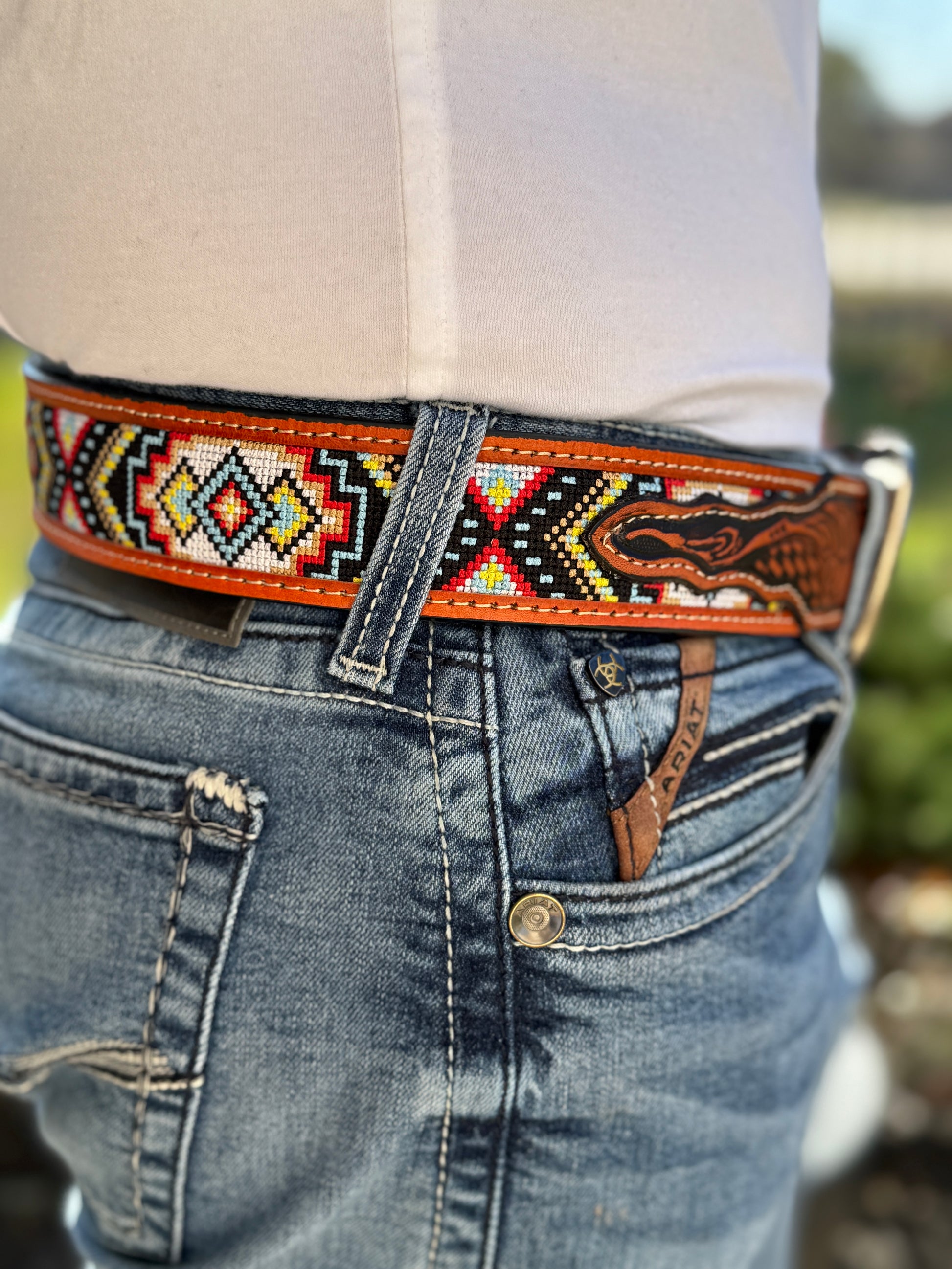 Meticulously handcrafted and adorned with vibrant, multicolored tiny stones, this exquisite piece is finished with a Western-style leather lining, creating a perfect fusion of artisanal craftsmanship and rugged charm. Product Features: