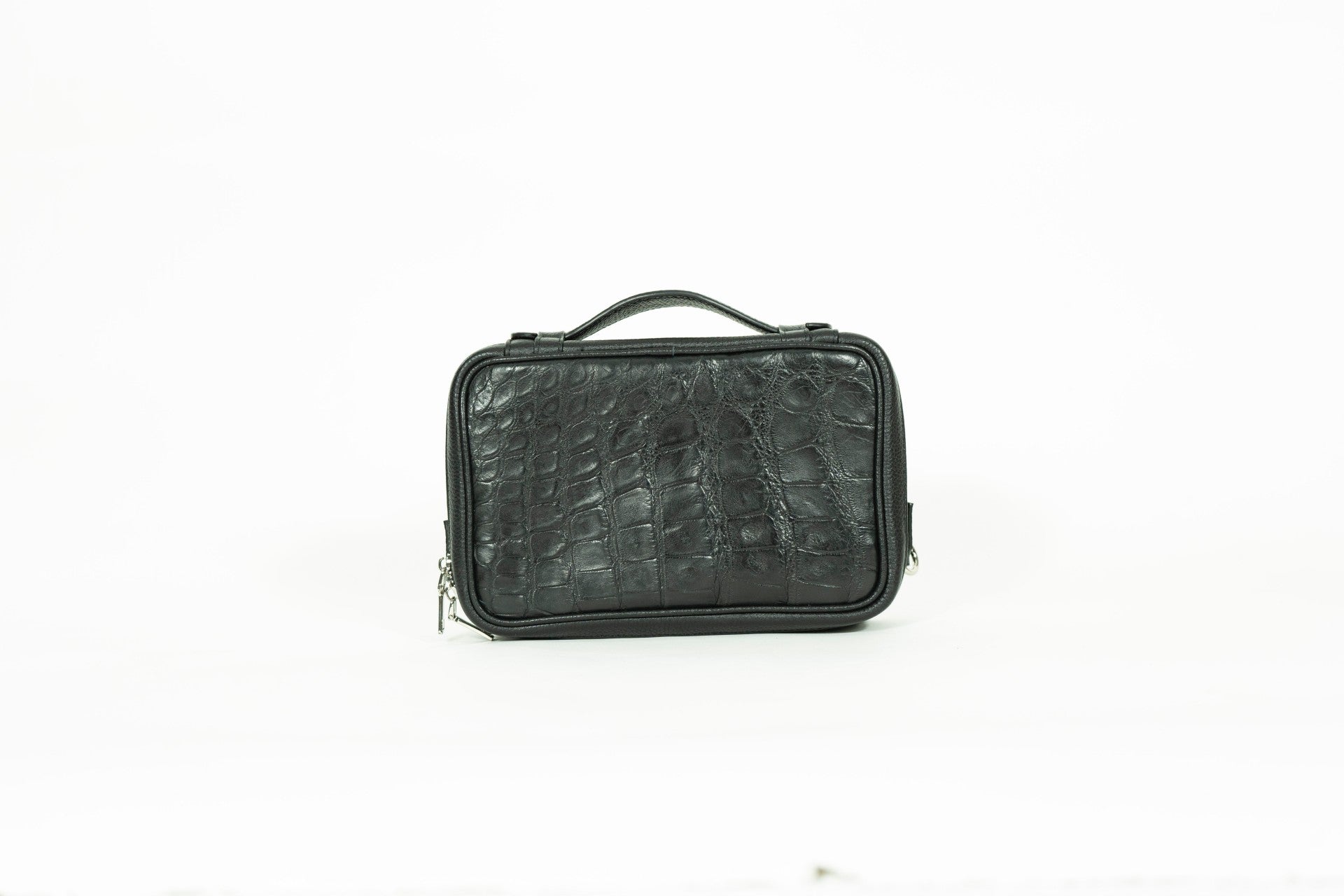 Material: Genuine cowhide leather body with authentic caiman leather front panel