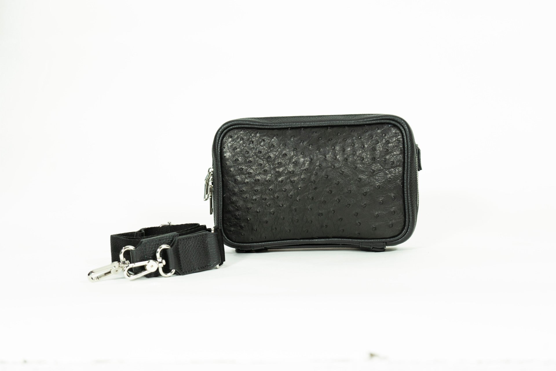 Material: Genuine cowhide leather body with an authentic ostrich leather front panel